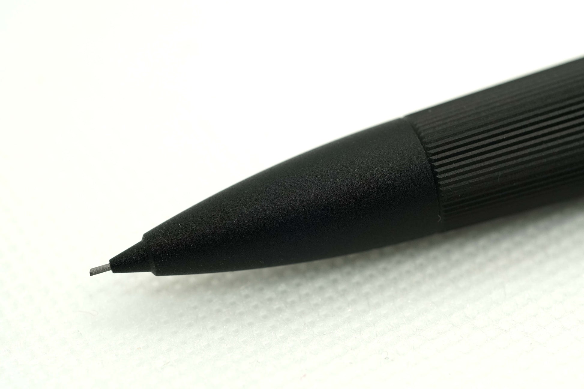 シャープペンシルは口金固定式を使用しており、ガタつきのない高レスポンスの書き味を提供します。手にしっかりとした握り心地をもたらし、その安定感が上品さをいっそう引き立てます。
