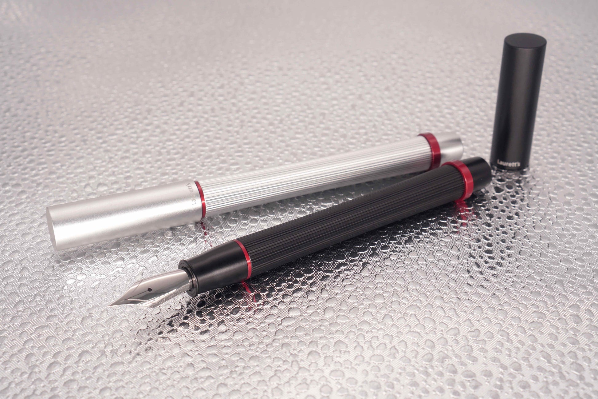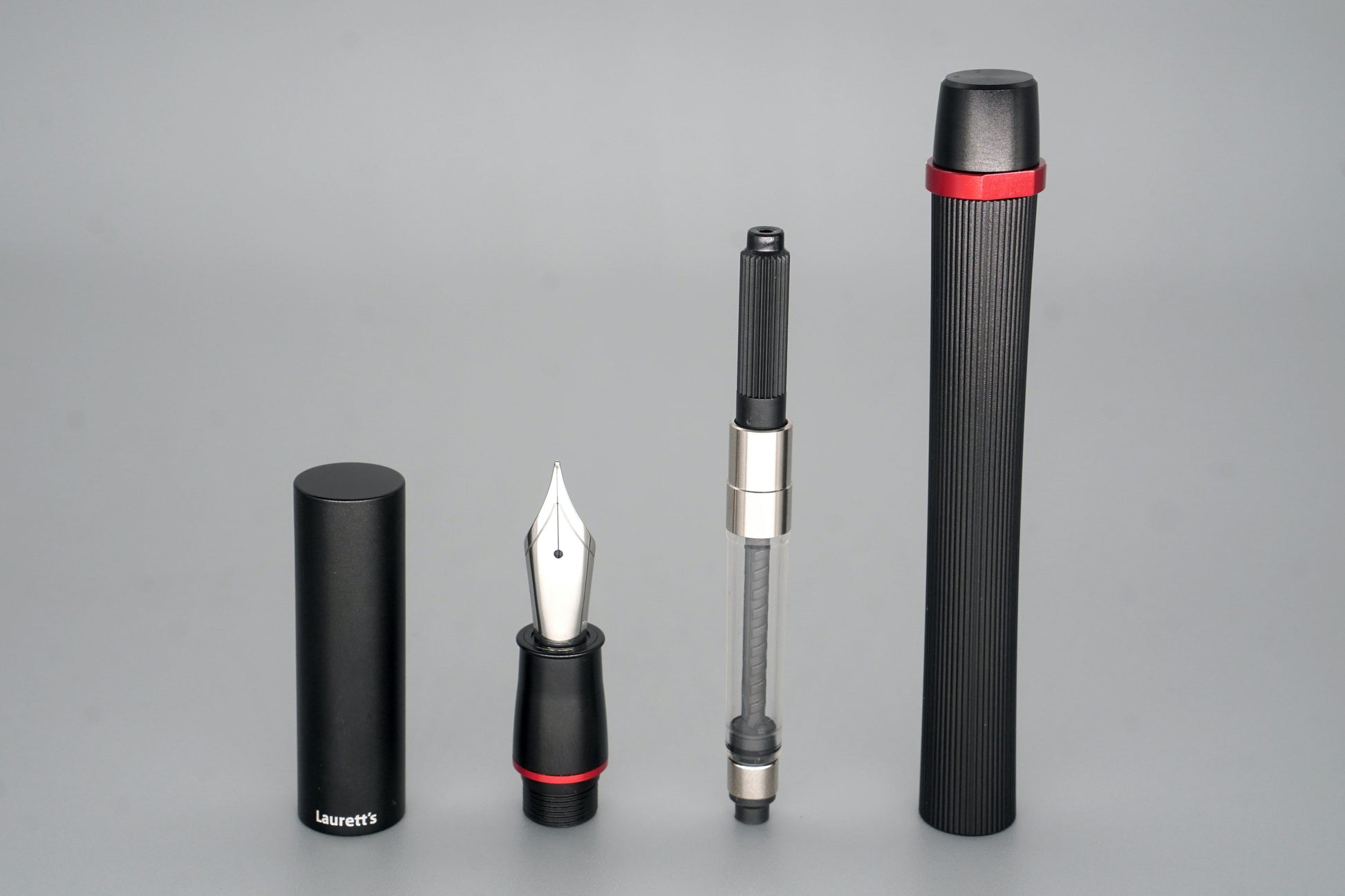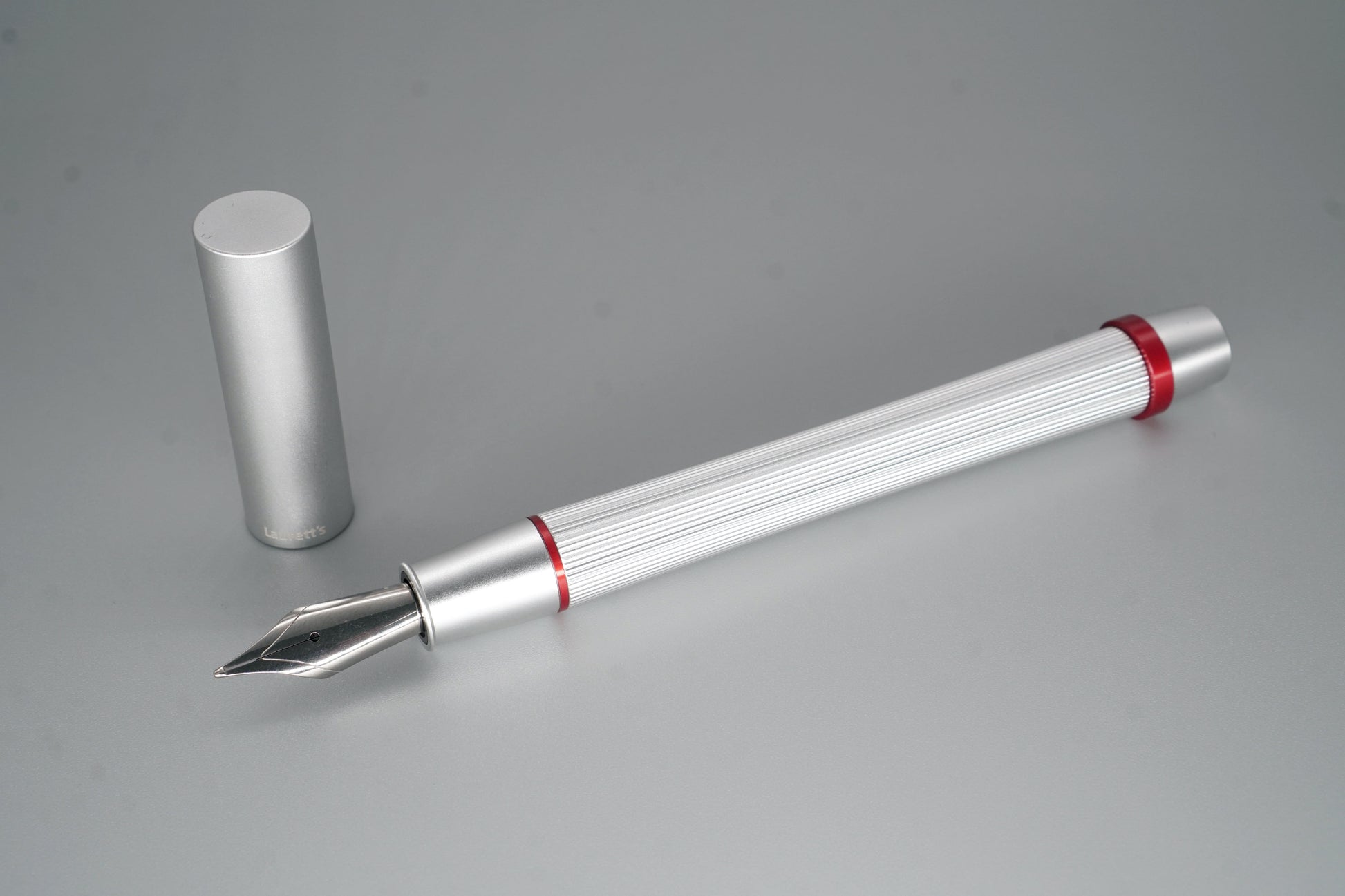 Laurett's Spinner 万年筆は、さりげないくびれを取り入れることで全体のシルエットを美しく仕上げ、さらにくびれ形状に沿ったRローレット加工を施すことで、よりスタイリッシュに、筆記性も高めました。軽量ながらもバランスのとれたSpinner万年筆は気軽に手に取りやすく、筆記意欲をかき立てることでしょう。エンド側には転がり防止のためのDカットリングを装備。