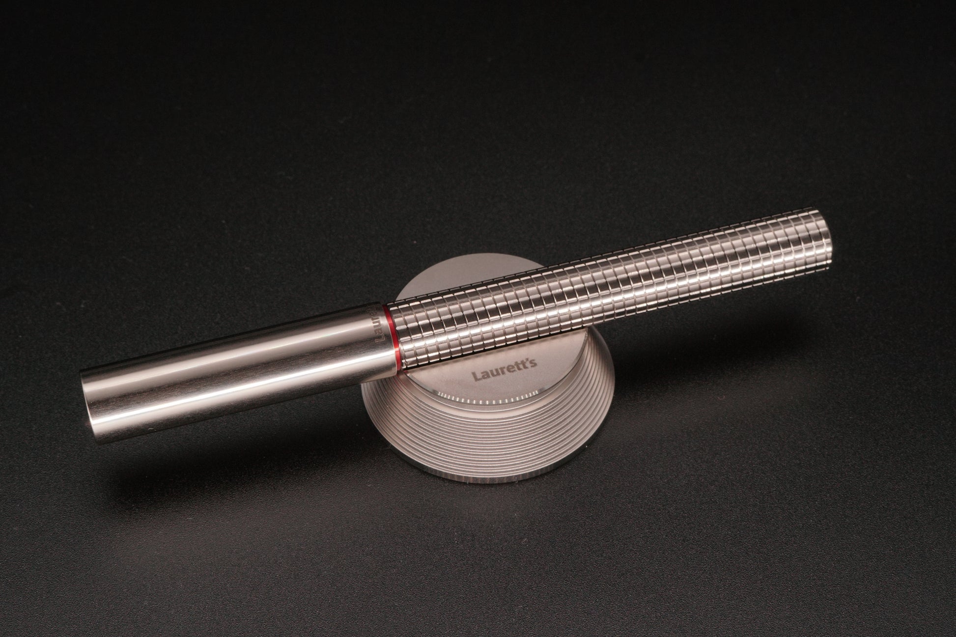「Stealth + Thread」という名前の通り、美しいローレットデザインの中にネジ山を忍ばせています。見た目からはまるでネジが存在しないかのように見えますが、収納時のキャッピングや使用時のテールへの装着が可能な「隠しネジ」機構を搭載しています。(※実用新案登録済み)。精緻な加工によって実現された不思議な仕掛けをご体感下さい。※実用新案登録番号第3226325
