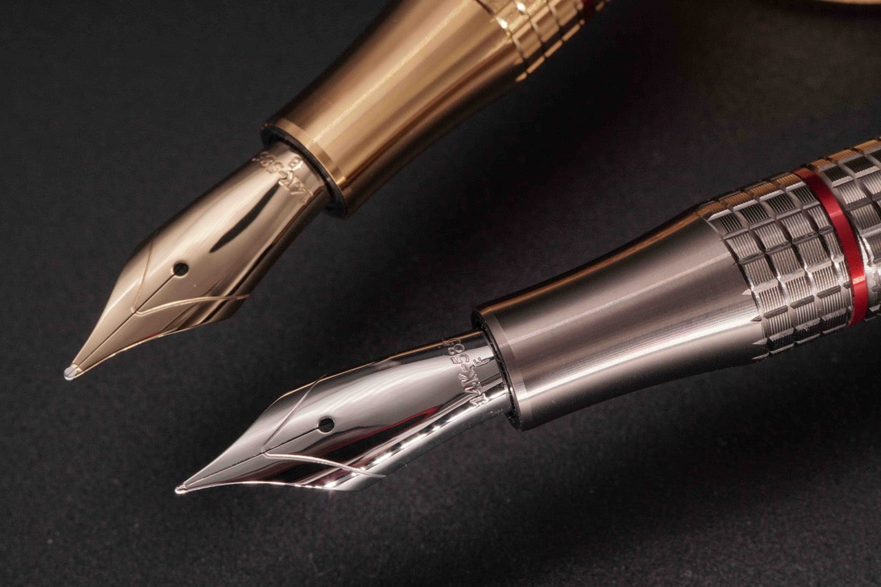 Stealthread 万年筆は、その精密で美しいデザインだけでなく、重すぎず軽すぎないバランスを追求した優れた設計が特徴です。各パーツに使用する材料はバランスを考慮しながら選定し、軽快でありながらも安定した書き味を実現しました。ペン先には14金を使用。洗練されたデザインと優れた機能性により、Stealthread はプロフェッショナルな文筆家やビジネスの場で活躍する方々にとって理想的な選択となることでしょう。文を紡ぎ出す喜びを感じながら、上質な筆記体験をお楽しみいただけます。